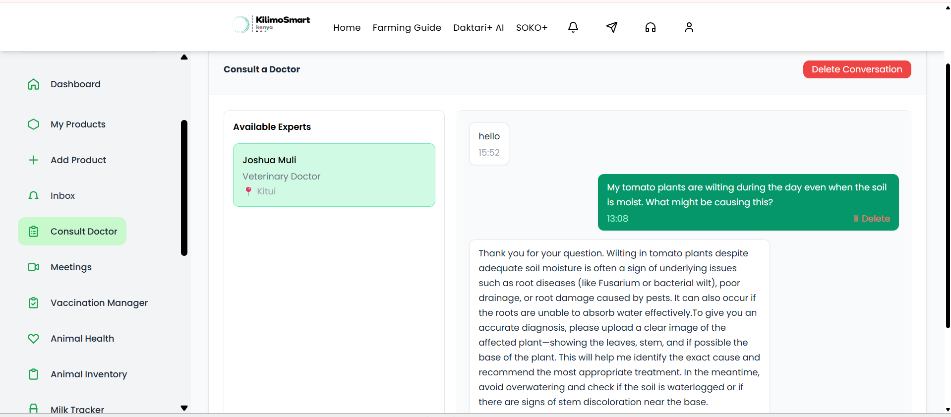 Get instant agricultural support powered by artificial intelligence and verified experts. KilimoSmart enables farmers to diagnose problems, receive treatment recommendations and consult professionals β all in one seamless platform.